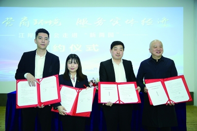 3月29日,“优化营商环境 服务实体经济 江岸融商会走进新两园”活动在江岸区黄浦创立方产业园举办。一场对接会下来,创高幕墙、武汉湖锦、江岸红鼎、恒润拾运营公司分别与农商行、湖北银行、招商银行、工商银行签订了融资协议。