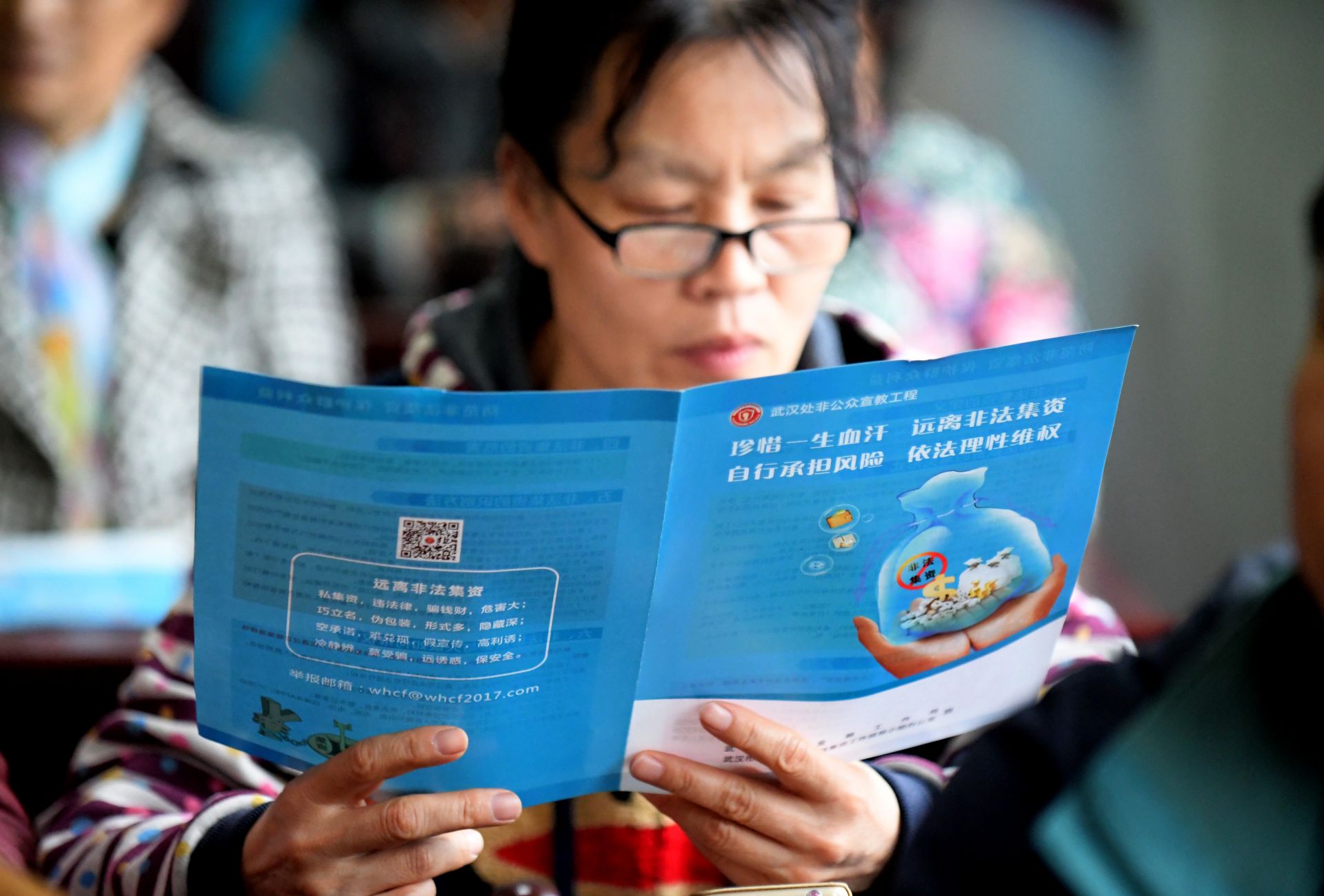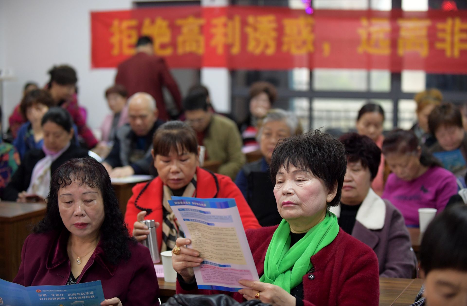 图为硚口区玉带社区居民在学习“防非”知识。(长江日报记者刘斌摄)