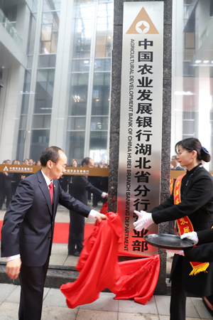 4月28日,中国农业发展银行湖北省分行营业部乔迁至新地址:湖北省武汉市武昌区徐东大街128号联发·九都国际项目8栋,并举行开业揭牌仪式,正式对外营业。