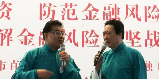 “处非文艺轻骑兵”成员陆鸣、赵卫国表演相声《弄巧成拙》 汪照祺 摄