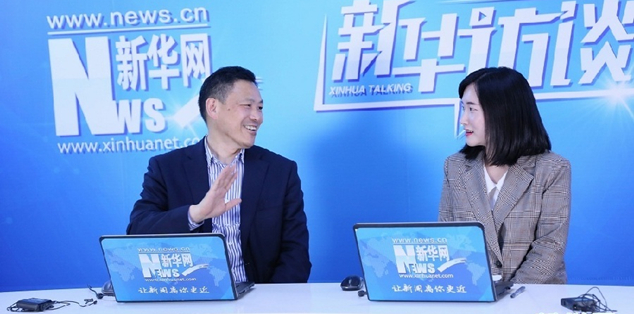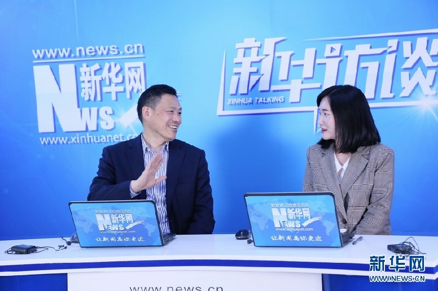 图为众邦银行董事长晏东顺接受新华网专访。(新华网 连迅摄)