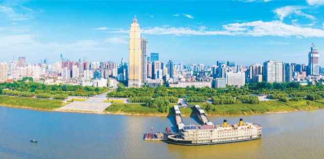 在江岸区,沿着6.8公里长的建设大道一路穿行,沿线高楼林立,各类金融机构扎堆聚集,在这片7平方公里的区域内,入驻金融业区域性总部达27家,成为一条名副其实的城市发展“金腰带”。
