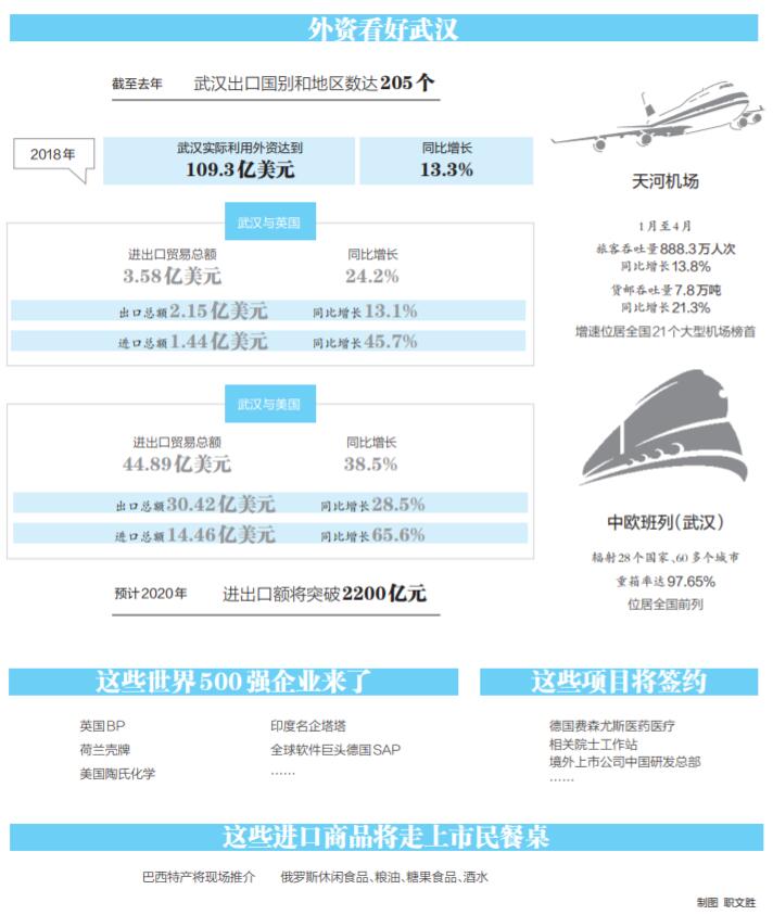 武汉的国际市场日趋多元,以亚、欧、北美等地区为重心,与亚、欧、北美等地区国家保持服务贸易往来,“一带一路”贸易额增势良好。截至去年,武汉出口国别和地区数达205个,进出口市场多元化格局初步形成,预计2020年货物进出口额将突破2200亿元。