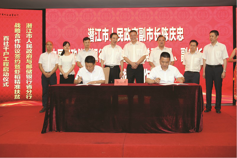 2018年7月5日,邮储银行湖北省分行与潜江市人民政府举行战略合作协议签约暨虾稻精准扶贫“百社千户”工程启动仪式。
