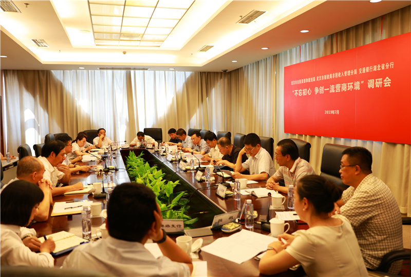 7月31日,交通银行湖北省分行联合武汉市自然资源和规划局、武汉市财政局非税收入管理分局开展“不忘初心、争创一流营商环境”调研活动,大力推进优化营商环境工作。