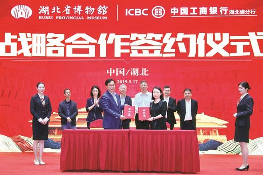 图为:2019年5月17日,工商银行湖北省分行与湖北省博物馆联合举办战略合作签约仪式。