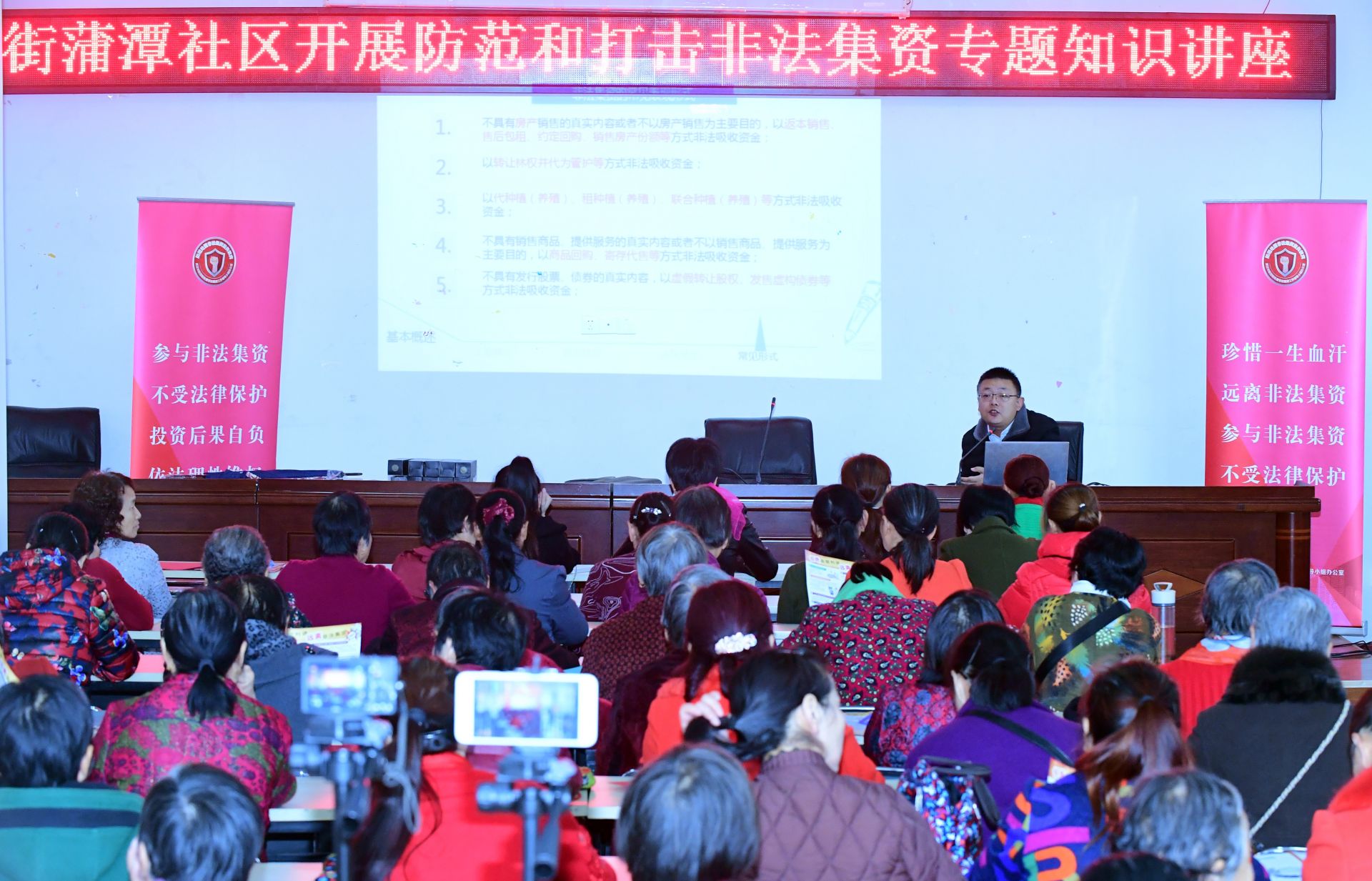 “无论是哪一种非法集资形式,都会表现出四种特征,市民应该牢记这四大特征,远离非法集资陷阱”。11月7日至今,“武汉市防范非法集资百场公益讲座”第17场至20场,先后在经开(汉南)区蒲潭社区和碧湖社区、江汉区的民族街和民权街举行。湖北卓创德赛律师事务所律师夏斌、湖北维勒律师事务所律师蓝应政、长江证券投资者教育基地讲师范斯琪、魏毅,作为“武汉市防非处非公益讲师团”成员分别做了演讲。