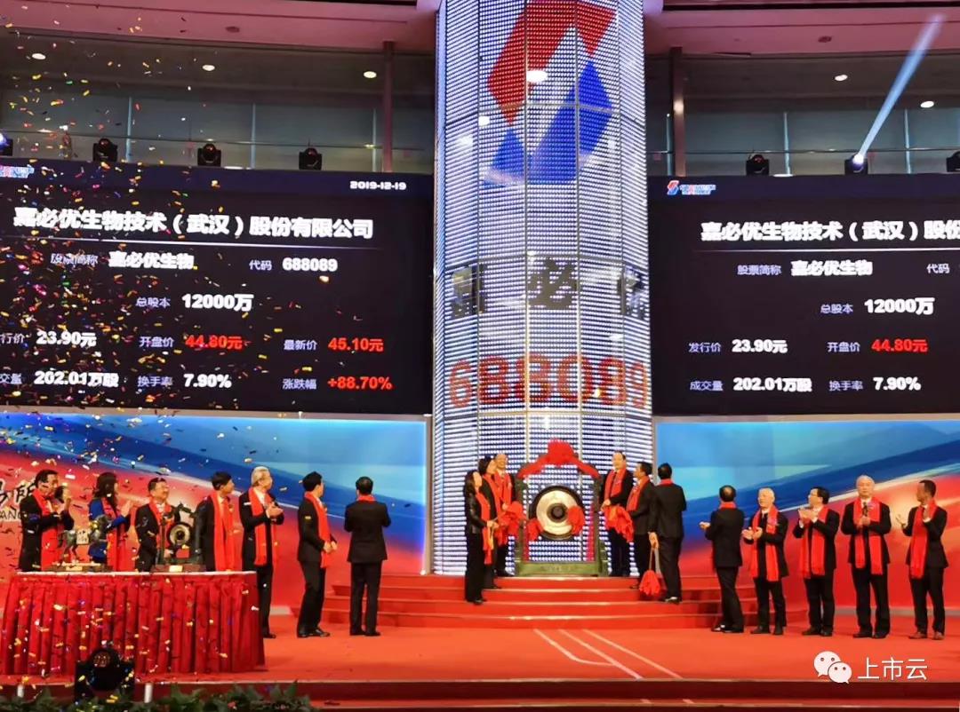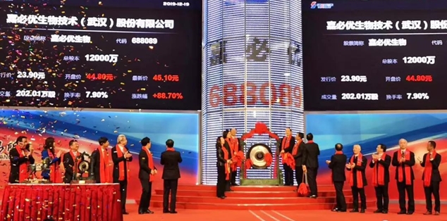 12月19日,湖北省“科创板种子”企业嘉必优在上交所成功发行上市,成为湖北省科创板第一股。嘉必优上市发行价为为23.90元/股,募集资金总额为71,700万元,将用于微生物油脂扩建二期工程项目、多不饱和脂肪酸油脂微胶囊生产线扩建项目及研发中心建设项目建设。