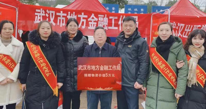 1月15日,2020年武汉市文化、科技、卫生“三下乡”集中示范活动在黄陂区李家集街文体广场隆重举行。市地方金融工作局相关负责同志为当地村民送去新年挂历、处非宣传册等节日慰问物资,价值5万余元。