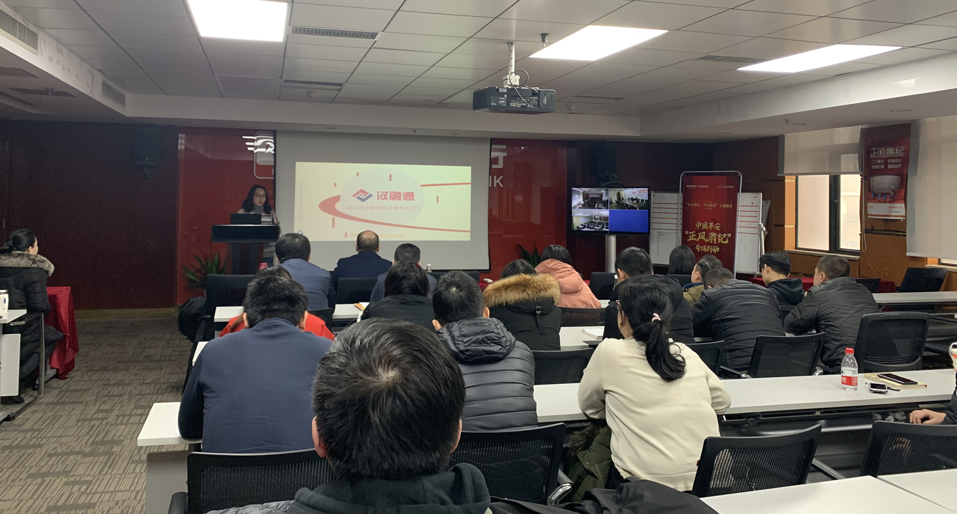 武汉农村商业银行在全行范围内全面推广应用“汉融通”。2019年12月24日,该行召开全行“汉融通”专题推广培训会,相关业务部门、光谷分行、各一级支行、营业部负责人和业务骨干等100多人参加。