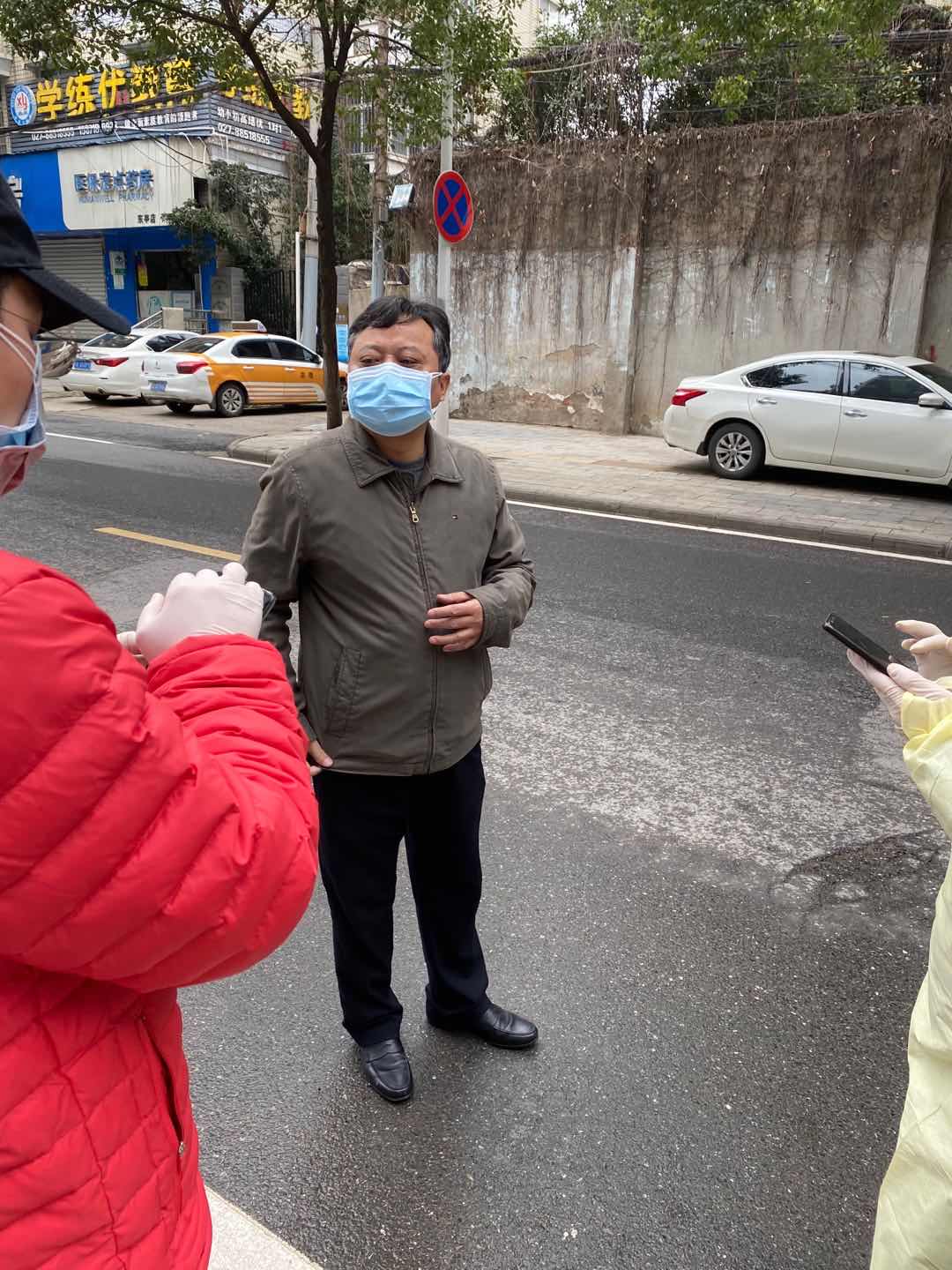 第一小组程文辉同志用英语劝回滨湖社区欲外出购物的外国居民