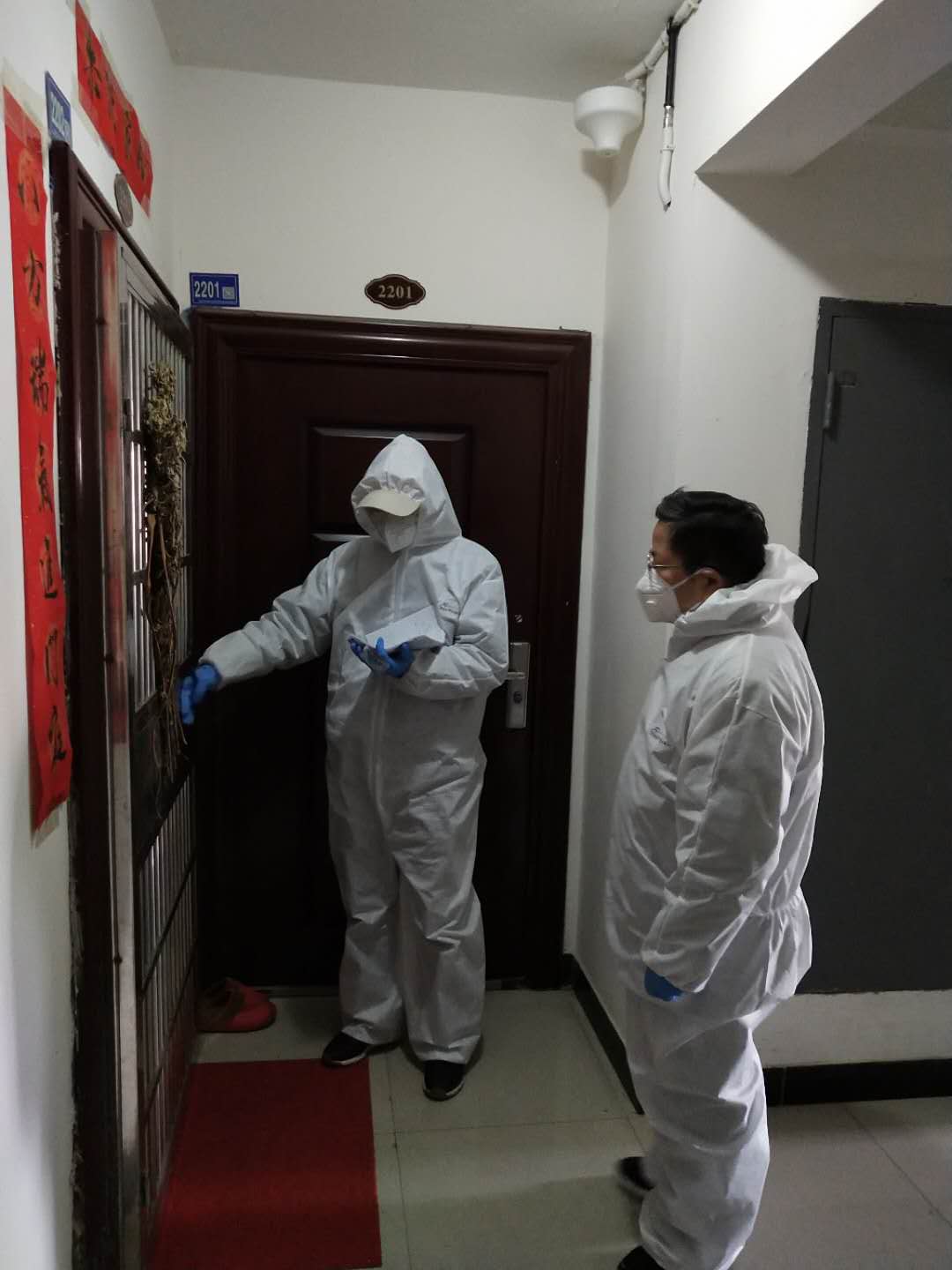 第三小组殷盛、李媛媛同志协助第一小组排查滨湖社区中北春天1栋176户体温
