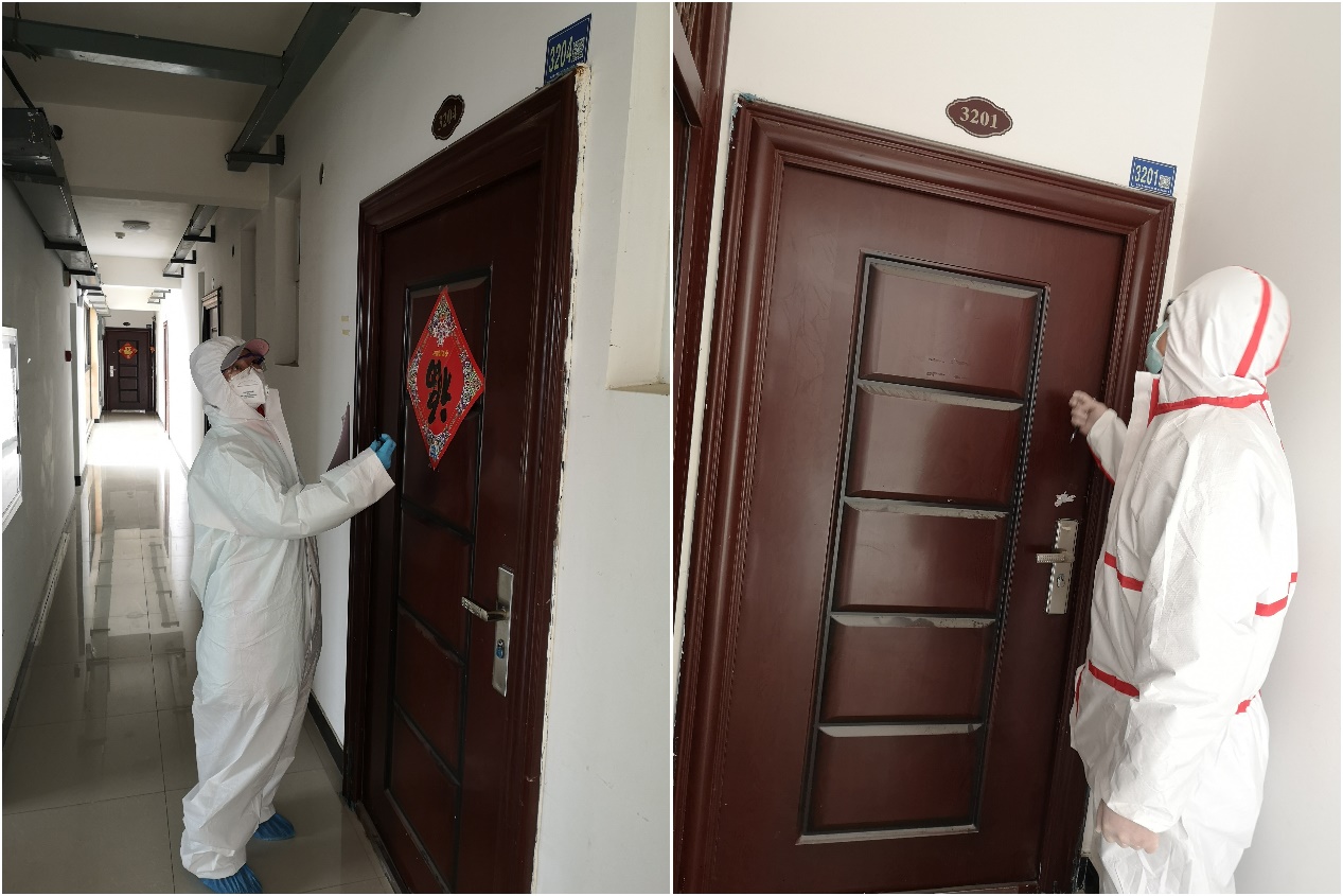 第二小组严鹏、黄寅皓同志入户排查黄鹂路社区邮局宿舍发热人员