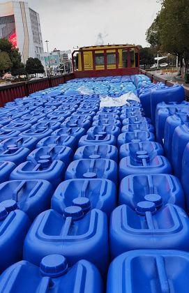 海力环保资金无忧,产能也是节节攀升。1月25日,第一批产品出厂,仅有15吨;1月31日,84消毒液和酒精消毒液达30吨;2月7日,日产量达到60吨左右。然而到了2月14日,一天产量就迅速增至100吨,其中70吨84消毒液、30吨酒精消毒液。