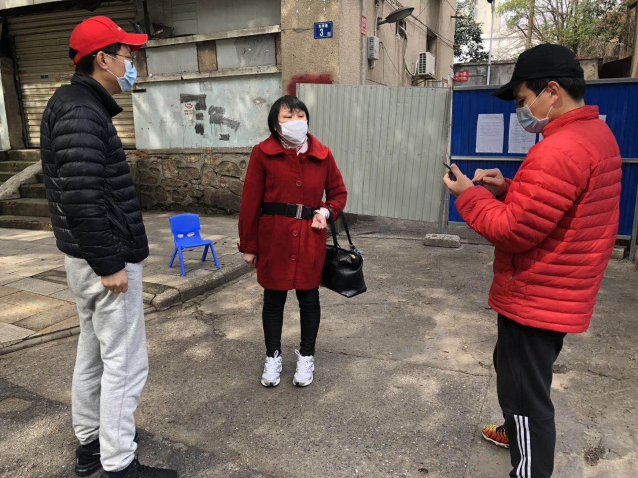 图三:姜俊、严鹏两位同志正动之以情、晓之以理劝解欲外出的小区居民