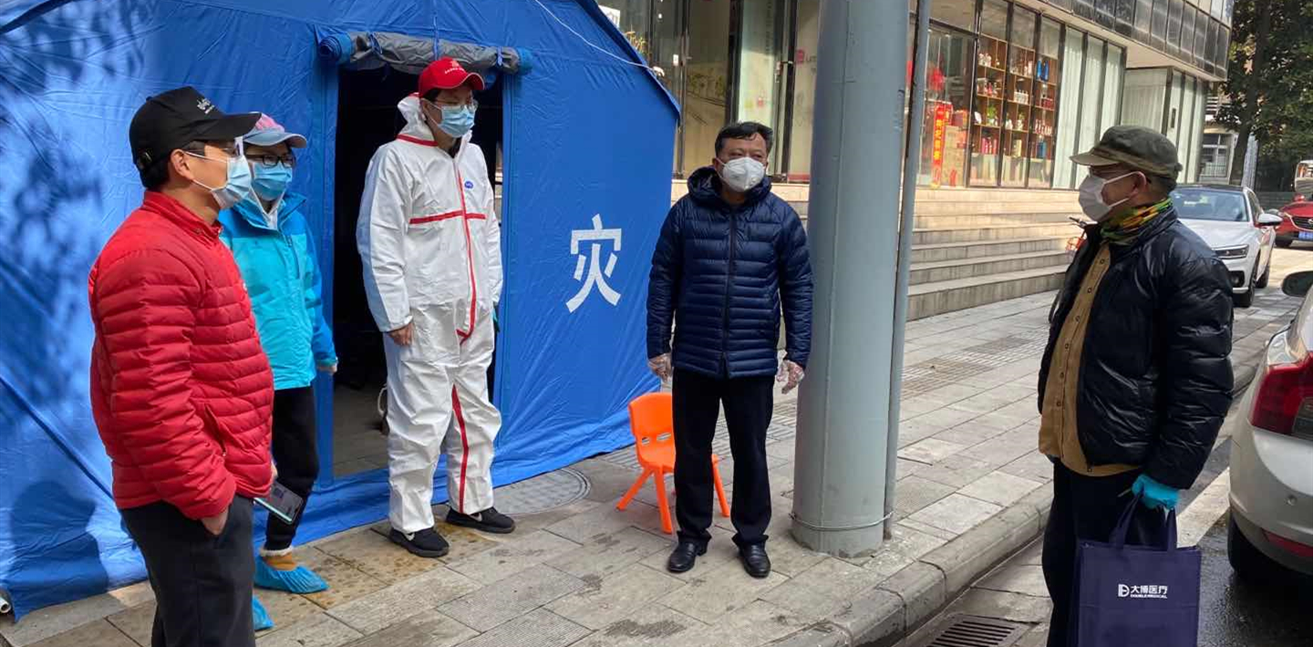第一小组包保中北春天小区的“帐篷超市”开张,为居民提供新鲜蔬菜及生活必需品