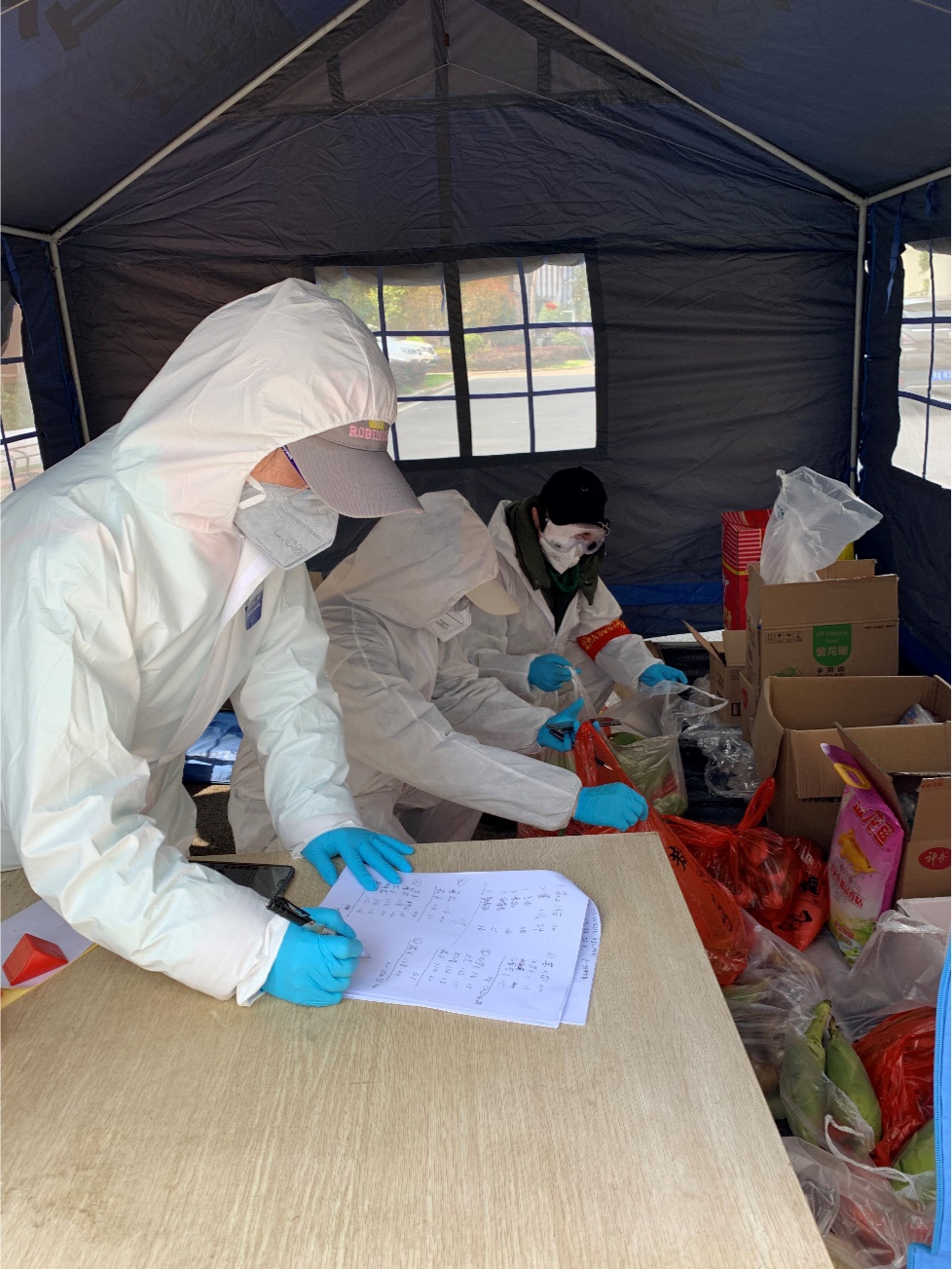 东亭社区省构建小区是一个建于上世纪80年代的老旧小区。为更好地把握小区居民生活动态,第四小组成员在组长蔡杰的带领下,主动与网格员、楼栋长攀谈,了解居民需求。省构建小区居民多为老年人,有的居民因为儿女不在身边,手机购物、付款成了一大难题。为了满足这类群体生活需求,第四小组组员组织志愿者,每天收集居民生活需求,积极联系供应商于第二天送货上门并帮助分发入户,为居民稳定生活提供保障。