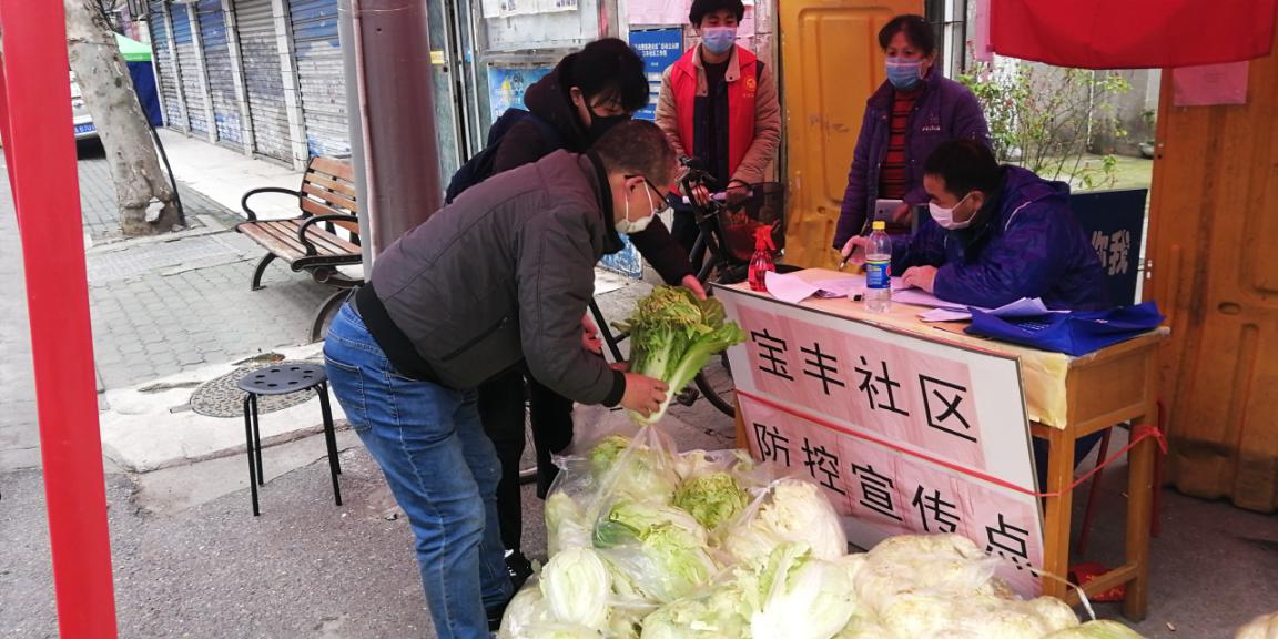 3月初,国通信托突击队驻宝丰社区负责人龚晟积极发动自身渠道,几经波折联系上石首市南口镇为宝丰社区捐赠20余吨新鲜蔬菜,并及时为捐赠企业联系解决通行和运输车辆问题。