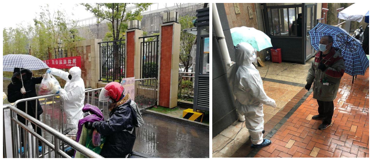 华安里社区靠近疫情最初暴发地华南海鲜市场。由汉口银行的20多位干部员工组成了突击队奋战在这里,6名小伙子组成“消杀小分队