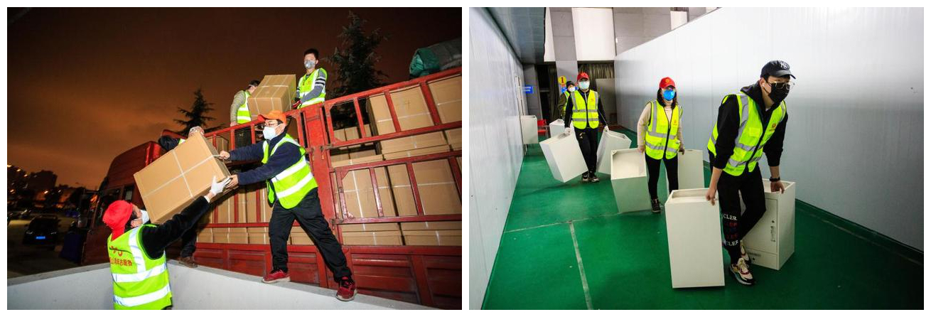 2月7日,杜逸琛收到了青年志愿队通知,武钢体育馆新建方舱医院需要志愿者参与卸货与设施安放,他立即赶到指定地点,协助完成武钢体育馆A、B两个场馆的物资搬运及摆放工作。