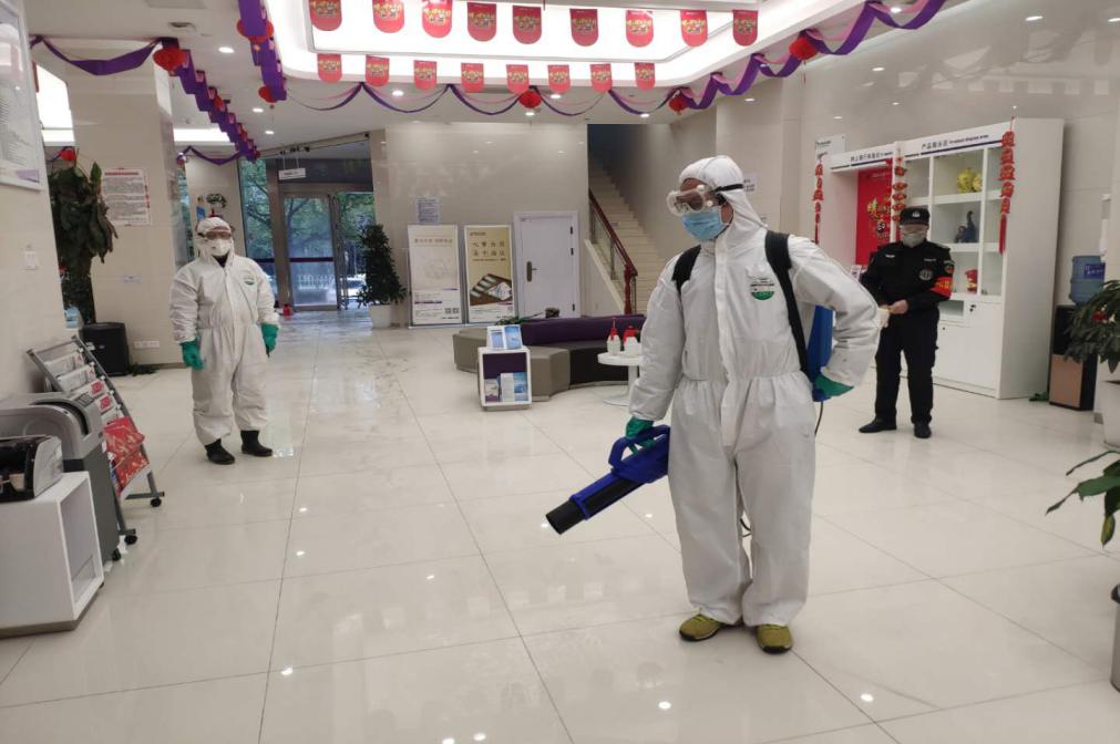 为确保营业场所及办公区域的环境安全、洁净,各二级分行严格进行全面消杀,做好营业场所和公共设施管理,做到消毒工作无盲区、无死角、全覆盖。3月15日,黄冈分行聘请专业消杀公司对分行本部及营业部内外环境进行全面消杀,并进行卫生大扫除。荆州分行每日对营业场所、自助机具的清洁、消毒不低于三次,做到营业前、营业中、营业终的消杀无遗漏;对营业室门前地垫、各类座椅、把手、扶手、柜面、废弃口罩专用垃圾箱等随时喷杀消毒;现金柜台配备紫外线消毒仪器,对接收和付出的现金、凭证通过密闭环境进行消毒杀菌。