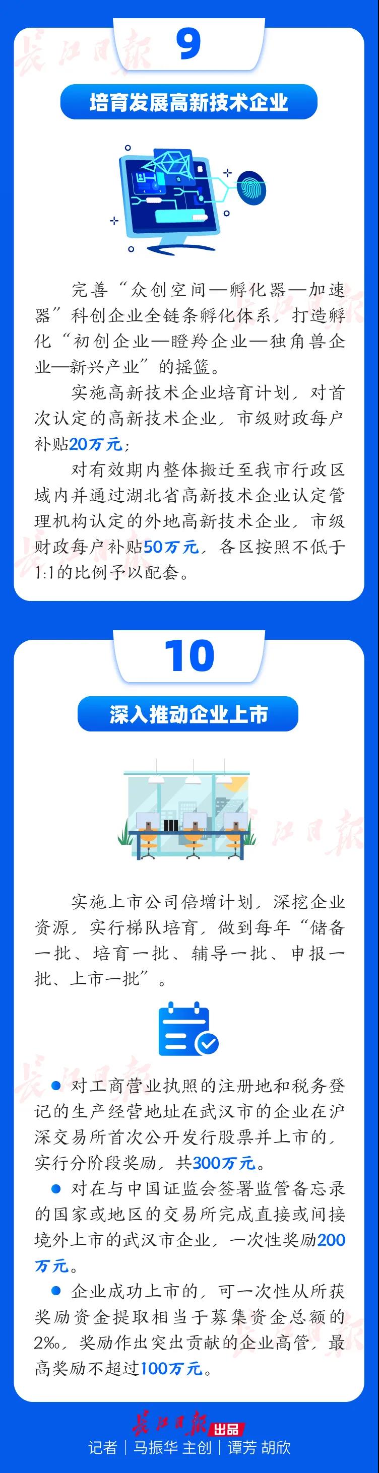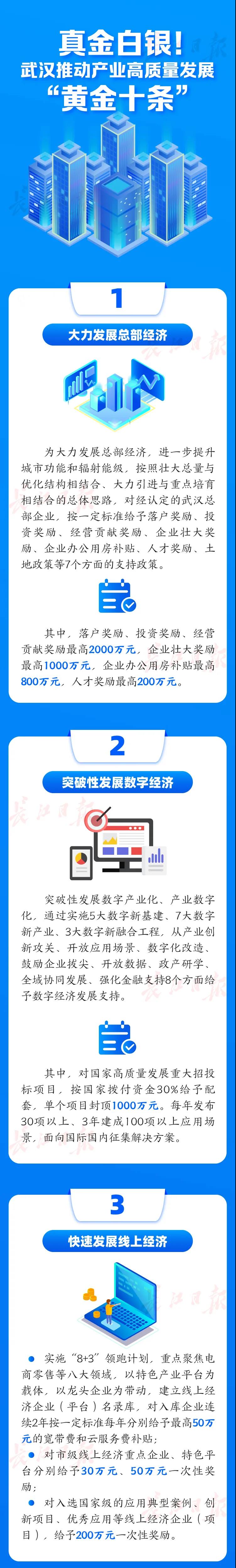 上海证券交易所党委书记、理事长黄红元,深圳证券交易所党委书记、理事长王建军,同时现身大会,力“撑”武汉。在会上,武汉出台推动产业高质量发展“黄金十条”,落户奖励、投资奖励、经营贡献奖励最高2000万元,人才奖励最高200万元……