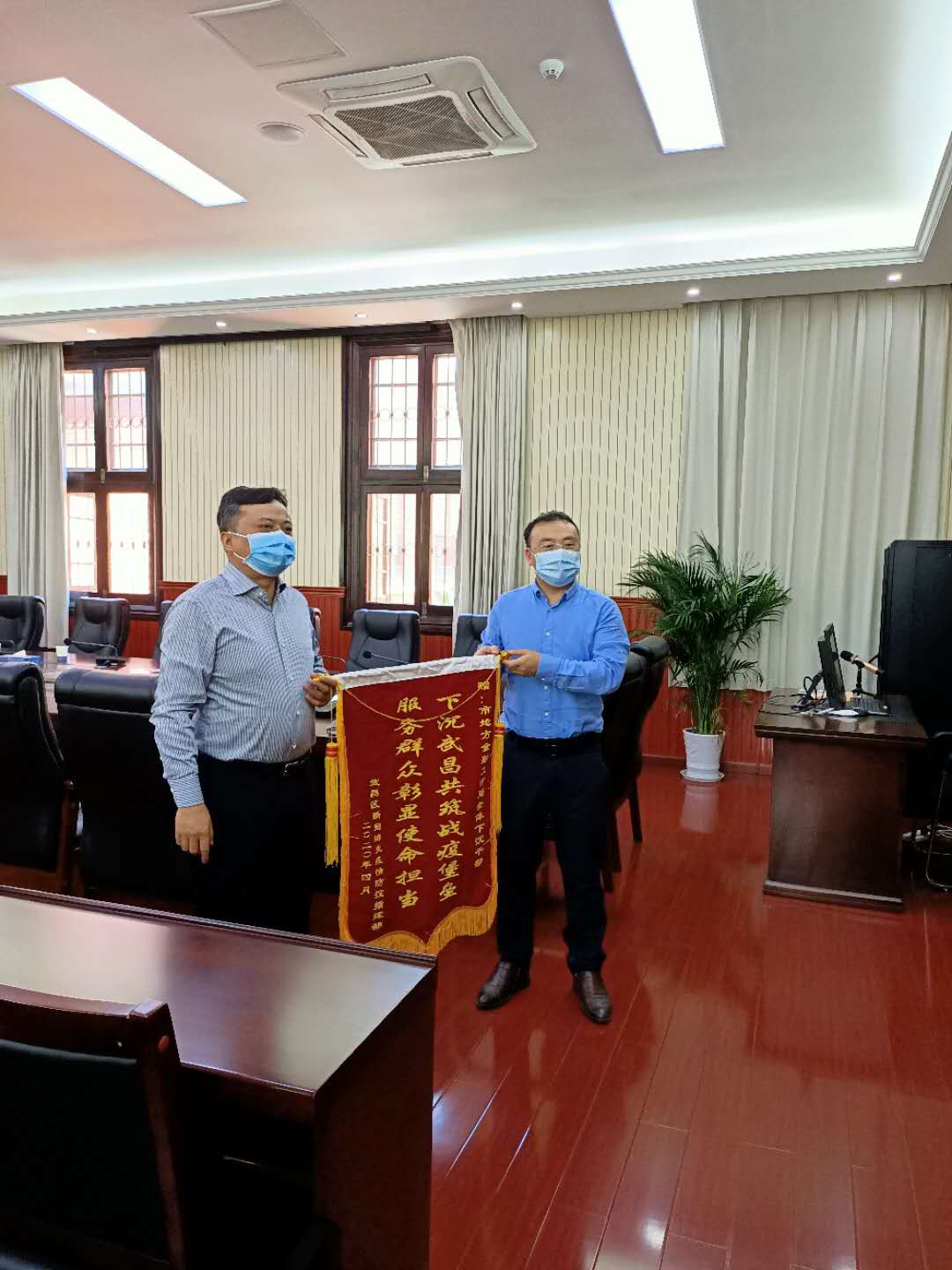 4月29日,武昌区副区长到市地方金融工作局感谢金融局下沉武昌区水果湖社区为疫情防控所作贡献。
