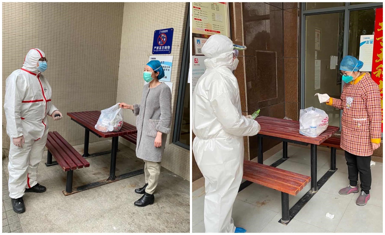 第二小组汪军、周丹同志为黄鹂路社区5位医务工作者家属配送“爱心包”