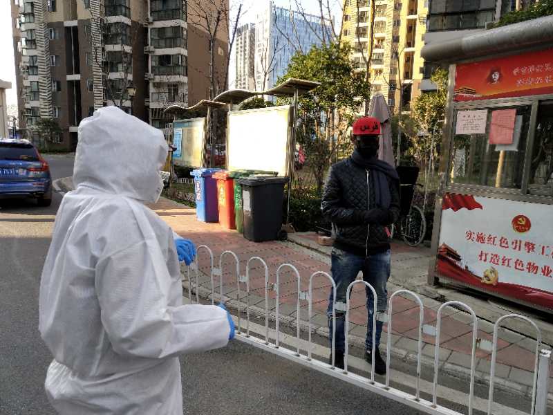 第一小组程文辉同志用英语劝回滨湖社区欲外出购物的外国居民
