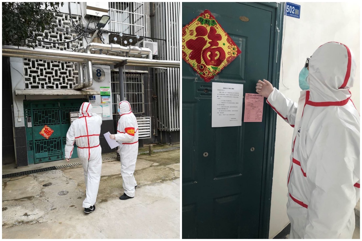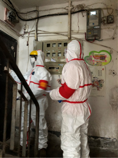 第二小组严鹏、黄寅皓同志入户排查黄鹂路社区邮局宿舍发热人员