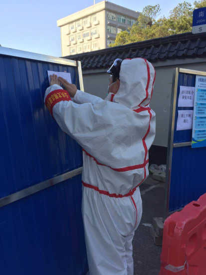 第四小组周洁同志做好东亭社区第九网格封闭工作