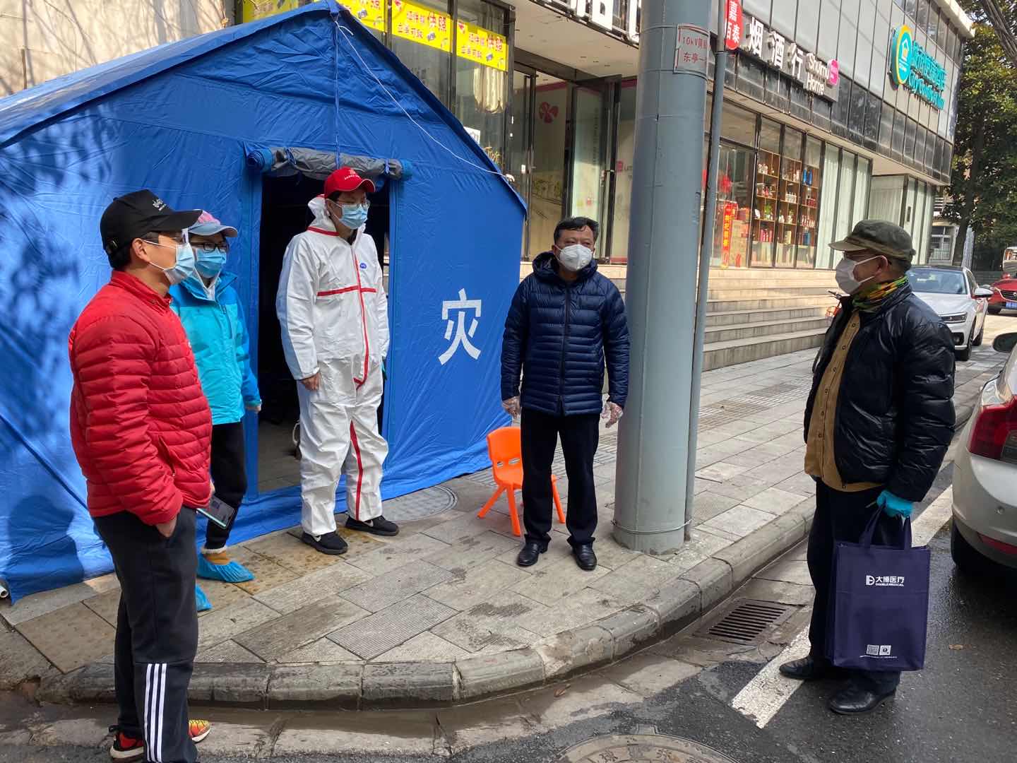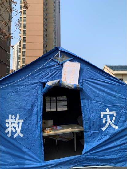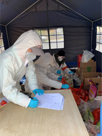 第一小组包保中北春天小区的“帐篷超市”开张,为居民提供新鲜蔬菜及生活必需品