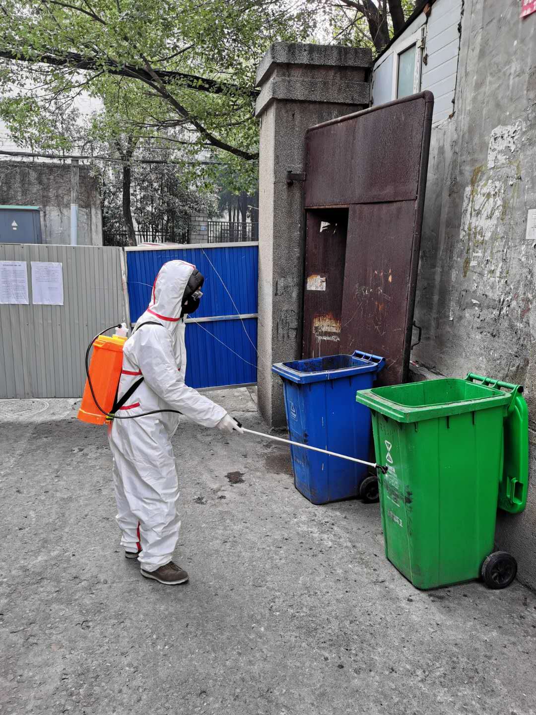 第二小组黄寅皓同志对邮局宿舍楼道进行消杀