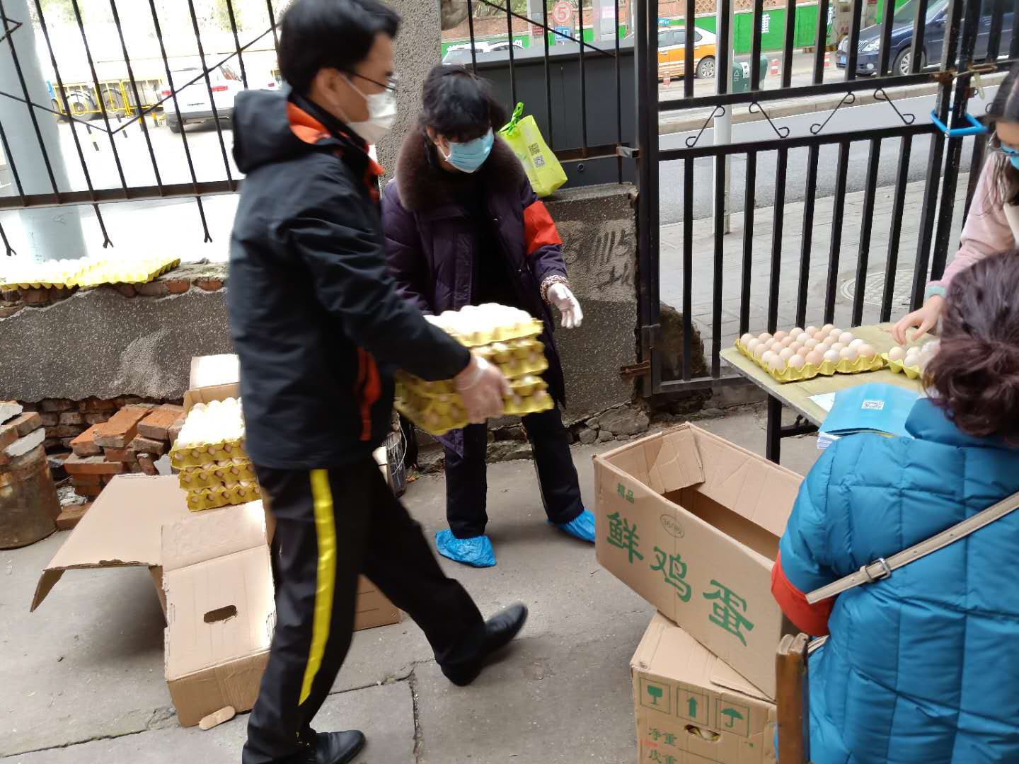 第四小组赵立志同志为省构小区居民分发代购鸡蛋