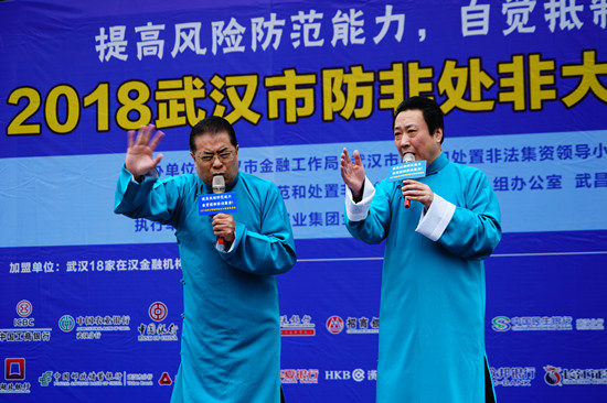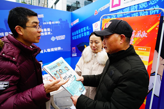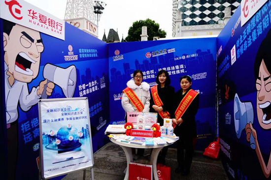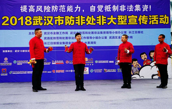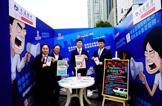 来自中国工商银行武汉分行、中国农业银行武汉分行、中国银行湖北分行、中国建设银行湖北省分行、中国交通银行湖北省分行、中国招商银行武汉分行、中国光大银行武汉分行、中国民生银行武汉分行、中国浦发银行武汉分行、中国华夏银行武汉分行、中国广发银行武汉分行、中国邮政储蓄银行武汉分行、中国浙商银行湖北省分行、湖北银行、汉口银行、众邦银行、长江证券、合众人寿湖北省分公司等18家金融机构的工作人员早早就来到现场,布置宣传展位,向街头往来市民分发“防非处非”宣传折页,耐心宣讲“防非处非”知识。