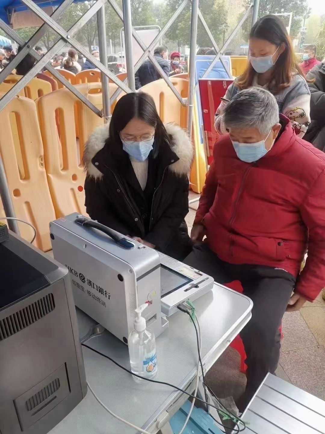 图为汉口银行硚口支行携“邻里宝”上门为老人办理业务