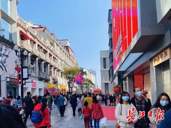 春节期间,不少市民前往江汉路步行街打卡逛街。长江日报记者赵歆 摄
