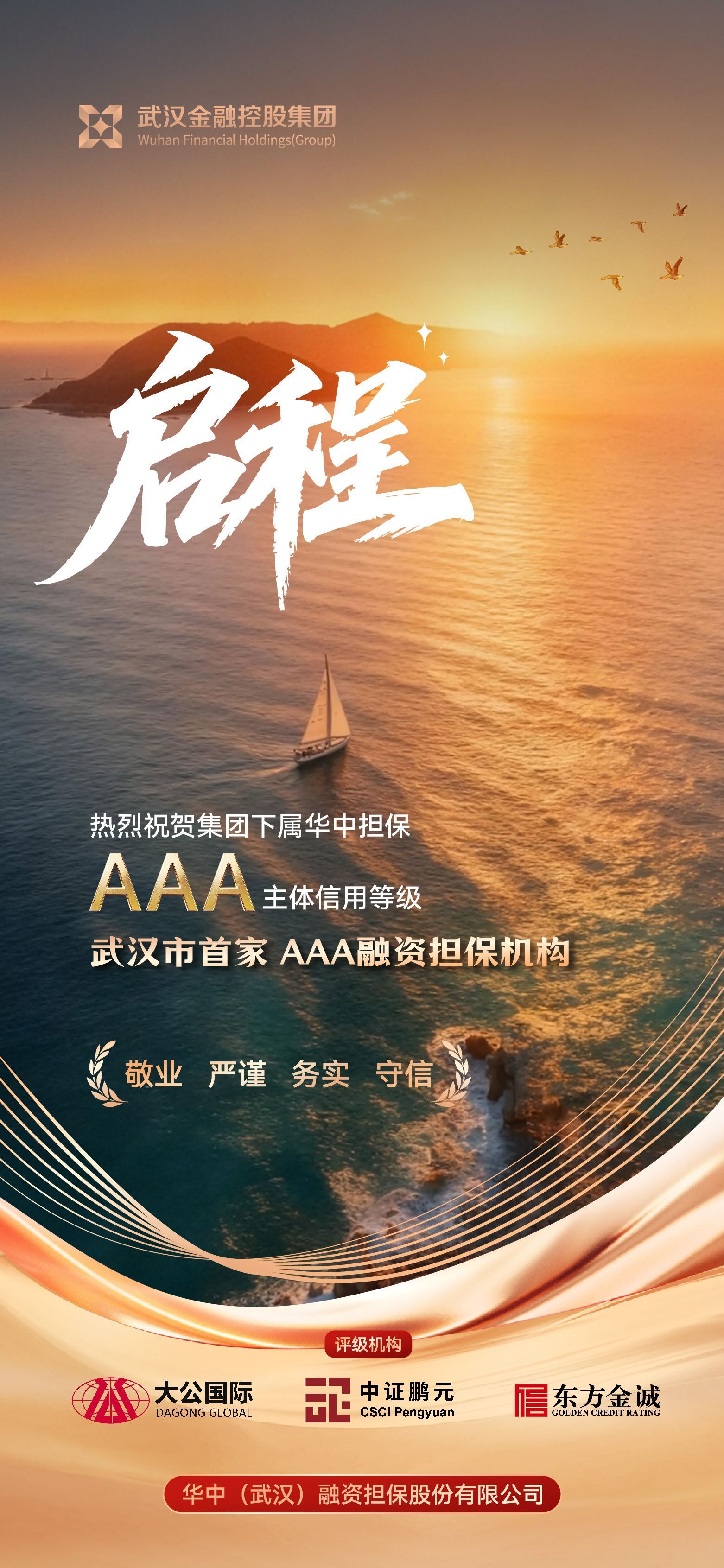 武汉金控集团坚持“牢记使命、建功支点,武汉所需、金控必达”发展理念,坚定履行新时代新征程国有企业使命担当,全力服务区域实体经济。培育AAA担保主体,推进新型政银担合作机制,将为增进中小微企业信用,缓解“融资难”提供更加有效的解决方案。站在AAA级的新高度,华中担保已然开启新的征程。在金融服务实体经济的时代潮头,公司将以信用为帆,以担当为桨,在助力中小微企业成长、促进区域经济繁荣、引领行业生态优化的道路上全速前进。这份优异的“评级答卷”背后,是一家国有金融企业的初心坚守,更是中国融资担保行业迈向高质量发展的生动缩影。未来,华中担保将继续砥砺前行,立志成为连接金融“活水”与荆楚大地实体经济的“黄金纽带”,为中国式现代化的武汉实践与湖北篇章,注入更加磅礴的金融动能。