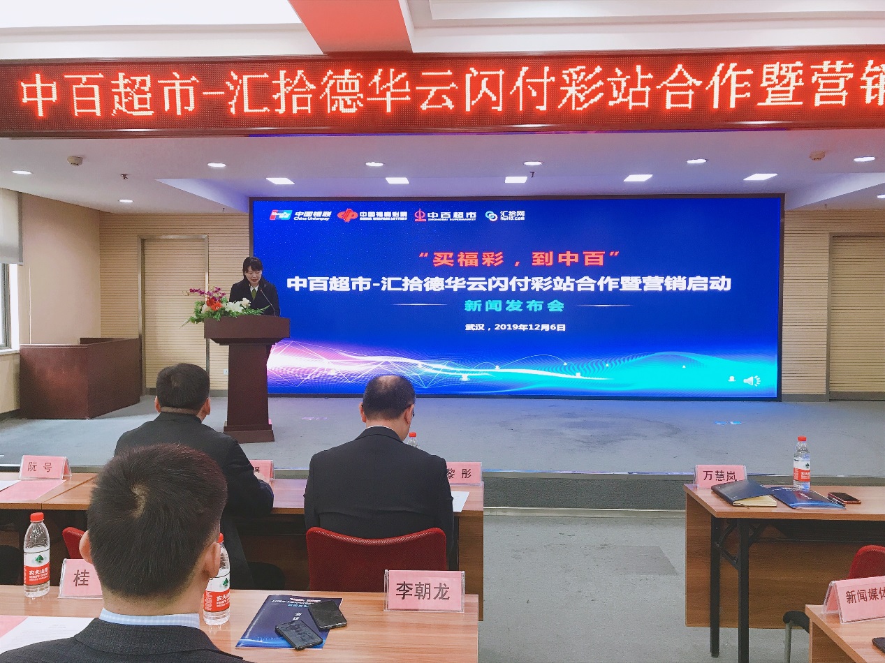 近日,中国银联湖北分公司联合湖北省福利彩票发行中心、北京汇拾德华信息技术有限公司、中百超市有限公司召开“云闪付彩站业务合作暨营销启动新闻发布会”,率先在省内700余家中百超市开通“云闪付购彩”业务。在进一步扩大云闪付APP便民应用范围、提升云闪付商户和用户规模的同时,助力拓展全省福彩市场,为彩民用户提供更方便、快捷、优惠的购彩体验。