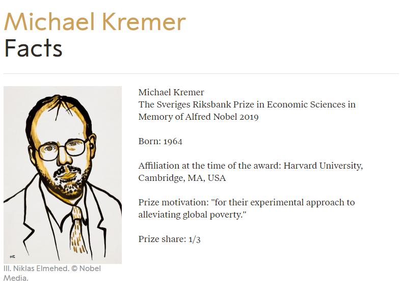 据诺贝尔奖官网消息,瑞典斯德哥尔摩当地时间14日中午,2019年诺贝尔经济学奖揭晓,获奖者阿比吉特·巴纳吉(Abhijit Banerjee)、埃斯特·迪弗洛(Esther Duflo)和迈克尔·克雷默(Michael Kremer),以表彰他们为减轻全球贫困所做的实验性贡献,重塑发展经济学方面的研究。他们的研究已经帮助减轻了全球贫困,并具有进一步改善地球上最贫困人口的生活的巨大潜力。
