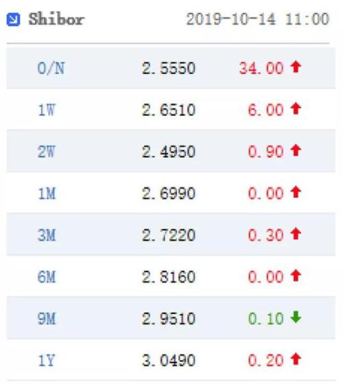 与此同时,自上周起,开始出现7天和14天资金利率倒挂现象,10月10日之后,14天Shibor基本处于2.5%左右水平,而7天Shibor则高于此水平5至10个基点左右。郭于玮表示,由于月初14天资金需求量不大,容易出现7天和14天倒挂的现象。