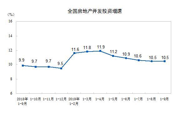 2019年1—9月份,全国房地产开发投资98008亿元,同比增长10.5%,增速与1—8月份持平。其中,住宅投资72146亿元,增长14.9%,增速持平。