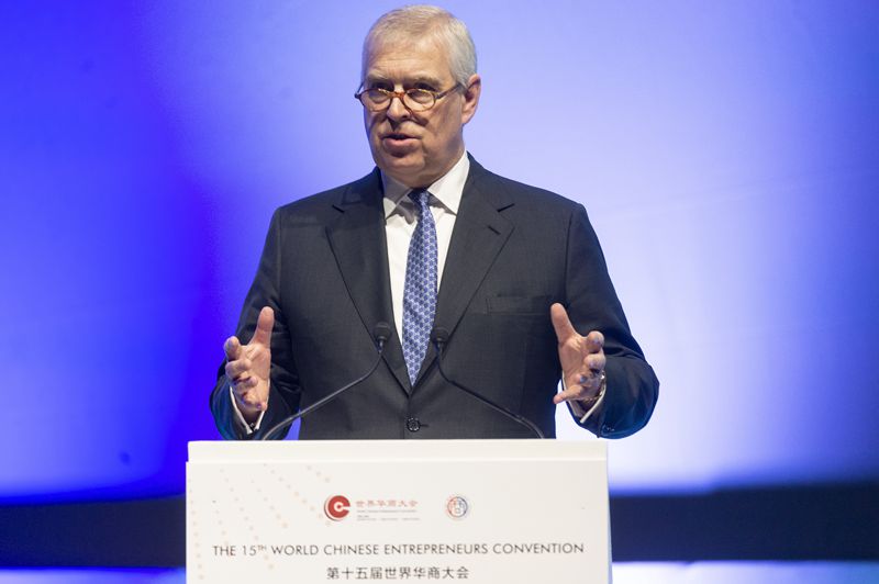 第十五届世界华商大会10月22日在伦敦开幕,近3000名来自世界各地的与会人士将围绕“世界新格局,华商新机遇”这一主题,共同探讨华商在英国及欧洲的发展机遇。图为英国约克公爵安德鲁王子致开幕辞。(雷伊·唐)