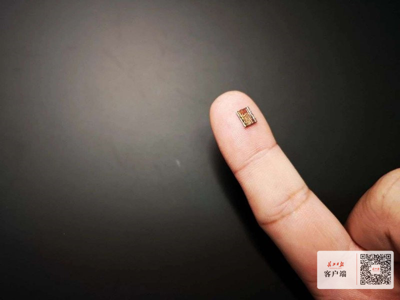 中国信科自主研发的不到30mm²的硅芯片上集成了包括光发送、调制、接收等近60个有源和无源光元件。(中国信科 提供)