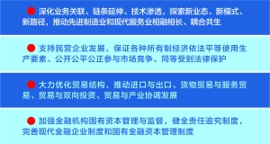 会议指出,推进贸易高质量发展,要强化科技创新、制度创新、模式和业态创新,以共建“一带一路”为重点,大力优化贸易结构,推动进口与出口、货物贸易与服务贸易、贸易与双向投资、贸易与产业协调发展,促进国际国内要素有序自由流动、资源高效配置、市场深度融合。