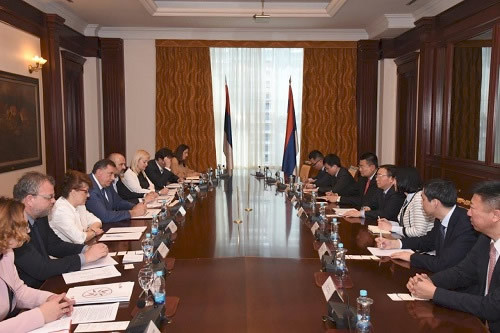 当地时间4月10日上午,中国银行董事长陈四清在巴尼亚卢卡与波黑主席团轮值主席米洛拉德·多迪克先生举行会谈,波黑塞族共和国财政部长佐拉·维多维奇女士参加。