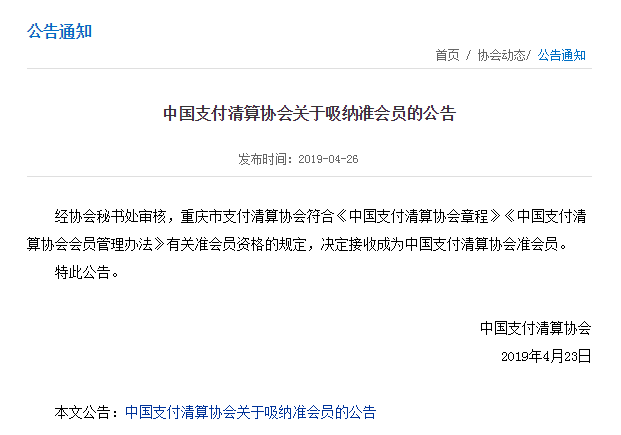 4月26日,中国支付清算协会网站公布了新一批加入协会的会员单位名单,名单包括网联清算有限公司、日本国际信用卡公司北京代表处(JCB)、北京意锐新创科技有限公司(简称意锐)等9家机构。