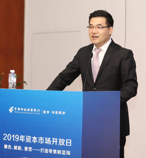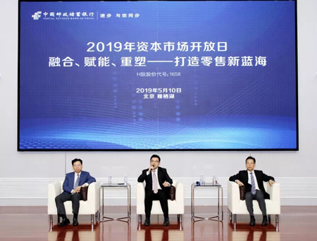 本报讯 5月10日,中国邮政储蓄银行在北京举办以“融合、赋能、重塑——打造零售新蓝海”为主题的2019年资本市场开放日活动。活动中,邮储银行通过主题演讲、管理层对话、互动交流、智慧银行体验等方式,全方位展示了在电子支付、线上消费信贷、农村电商、三农金融、战略伙伴协同、网点转型等方面的突出亮点和广阔发展空间。来自境内外知名机构的70余名投资者、分析师参加了此次资本市场开放日活动。邮储银行董事长张金良,副行长曲家文、邵智宝,董事韩文博、唐健、刘尧功,董事会秘书杜春野,总行部门和北京分行、深圳分行相关负责人以及邮储银行部分合作伙伴相关负责人出席了活动。