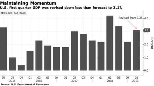 美国商务部周四公布数据显示,美国一季度实际GDP修正值年化季率3.1%,预期3.0%,初值为增长3.2%。消费支出从增长1.2%上修至增长1.3%,优于增长1.2%的预期,不过仍为一年来最低增速。