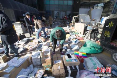 资料图:物流工作人员正在分拣快递。 张云 摄